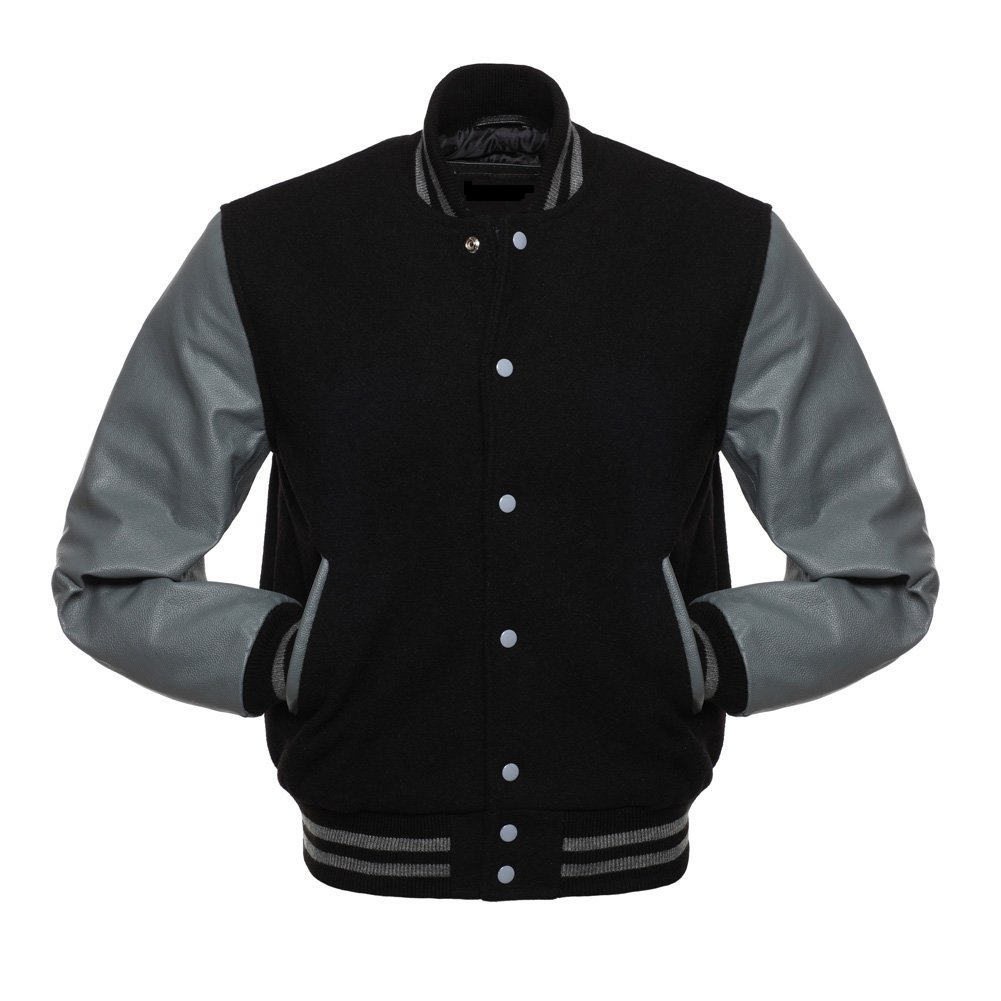 🧥 Product Title Men’s Grey & Black Varsity Jacket With Leather Sleeves 📌 Product Description ...