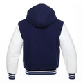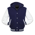 Premium Hooded Varsity Jacket – Navy & White | Wool Body + Leather Sleeves | USA Stock