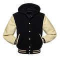 🏆Men’s Black & Cream Varsity Hooded Jacket – USA Stock | Wool Body + Leather Sleeves | Winter Warm Streetwear
