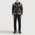 Men’s Liberté California Black Leather Varsity Jacket – “C” Patch Edition