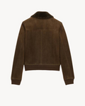 Discover relaxed elegance in the Suede & Shearling Bomber Jacket.