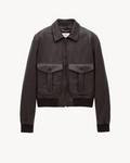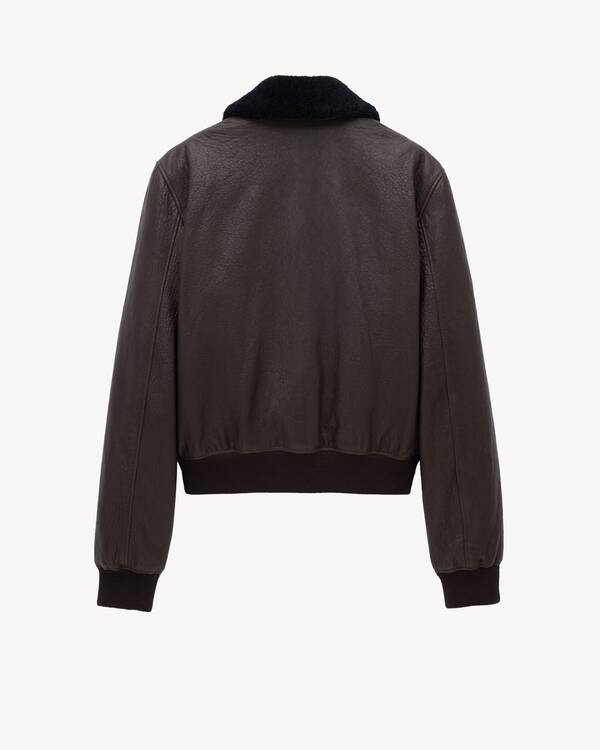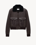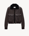 Discover the refined edge of luxury in the Bubbled Lambskin & Shearling Bomber Jacket.