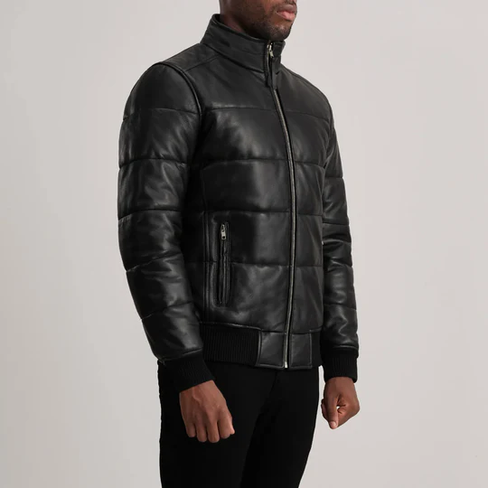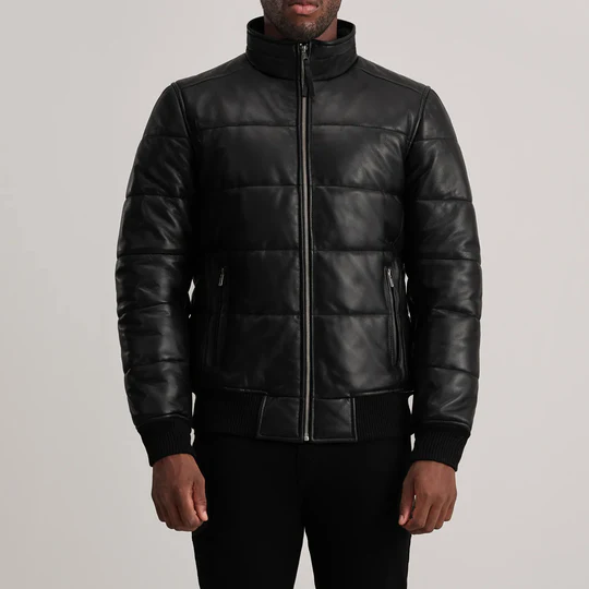 Men’s Lucas Black Leather Puffer Bomber Jacket