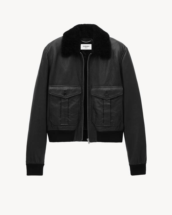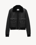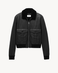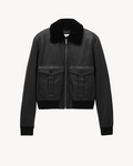 Command attention in the Bubbled Lambskin & Shearling Bomber Jacket.