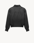 The unique textured lambskin finish provides a soft, refined touch and striking visual depth. Designed with drop shoulders, a shirred waist, and padded structure, it delivers a relaxed yet structured silhouette that elevates any outfit — whether casual or formal.