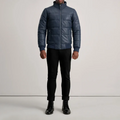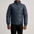 Rib-knit cuffs and hem help seal out wind and keep the fit structured, while the stand collar adds extra protection in cooler weather. Its deep blue color gives a refined, modern edge that pairs easily with denim, chinos, or casual winter layering.