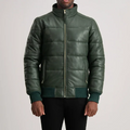 Lucas Green Leather Puffer Bomber Jacket for Men | Winter Leather Bomber