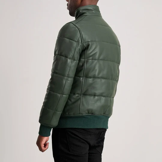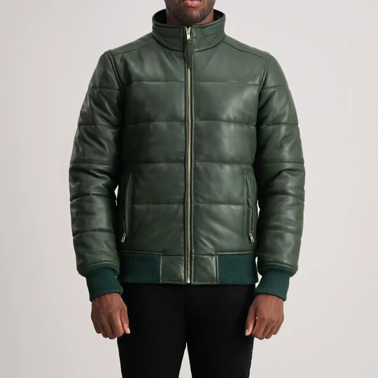 Men’s Lucas Green Leather Puffer Bomber Jacket