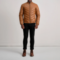 A sharp winter upgrade in real leather. The Travis Tan Puffer Jacket features angled quilted insulation for warmth with a clean, modern silhouette.
