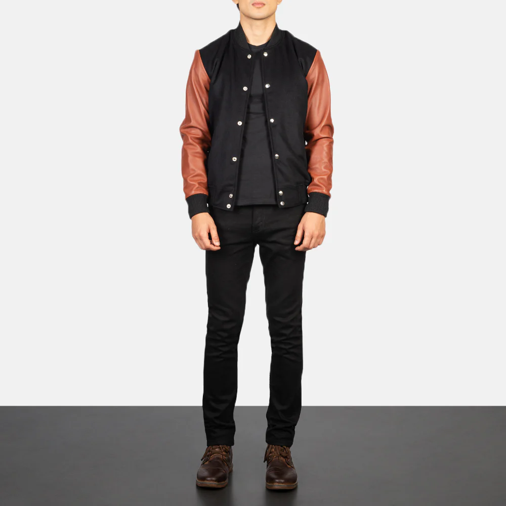 Title: Vaxton Black & Brown Hybrid Varsity Jacket for Men