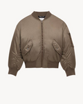 The jacket features ribbed trims, a baseball collar, and drop-shoulder structure for effortless wearability.