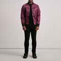 Turn heads with this sleek maroon satin varsity jacket, designed for effortless street-to-smart style. The glossy finish gives it a premium edge, while the classic snap-button front and striped rib-knit trims keep the look rooted in timeless varsity heritage. Lightweight yet structured, it’s the perfect layer for nights out, casual days, or adding a bold pop of color to your everyday rotation.