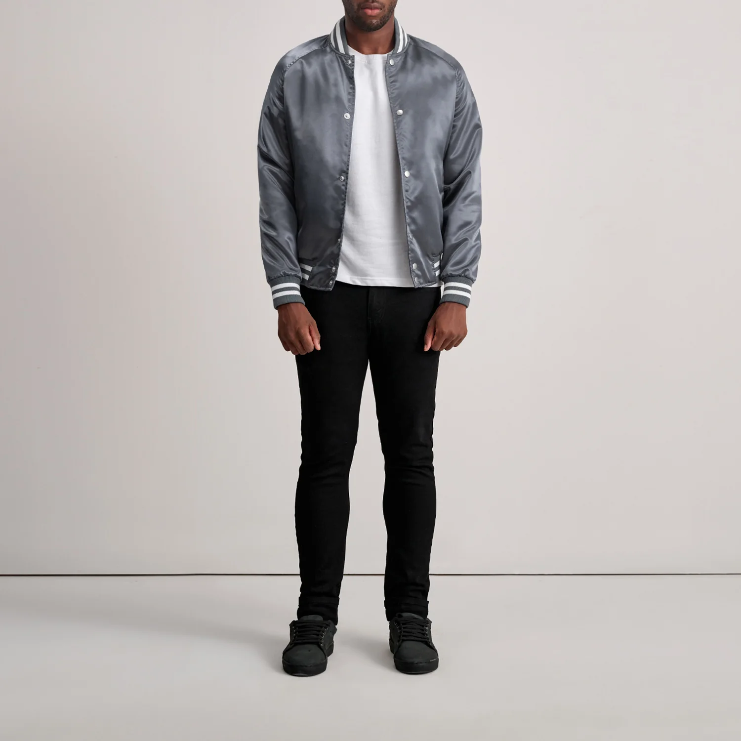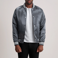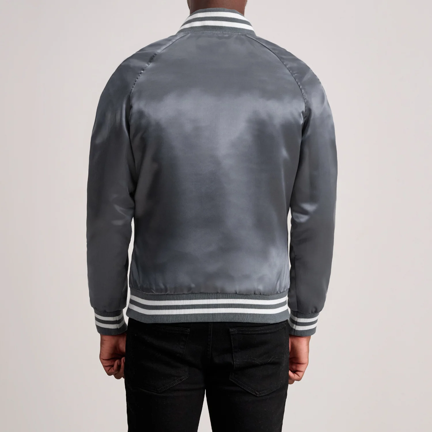 Title: Men’s Xander Grey Satin Varsity Jacket